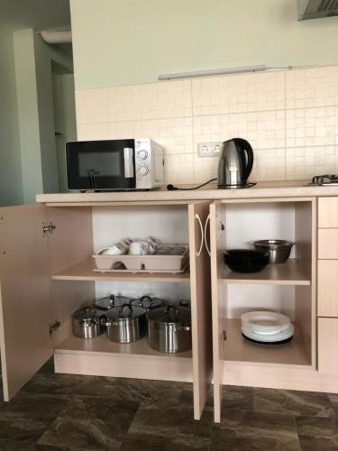 Boasting a terrace with inner courtyard views, a bar and barbecue facilities, SV apartments can be found in Zatoka, close to Karolino Buhaz Beach and 48 km from Odessa Train Station. Featuring a shared kitchen, this property also provides guests with a water park. Private parking can be arranged at an extra charge.
