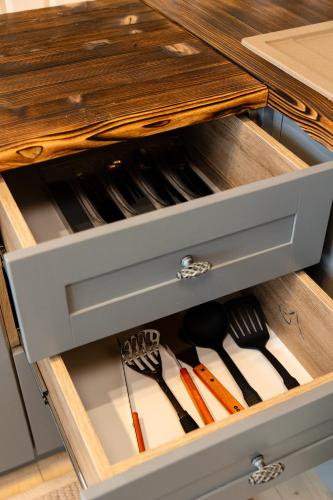 房间配有空调、设施齐全的厨房、平板电视以及带淋浴设施、吹风机和拖鞋的私人浴室。住宿配备冰箱、炉灶和咖啡机。