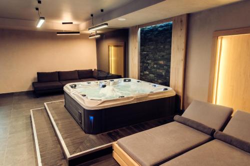 Verhovel Hotel位于韦尔霍维纳,配有带酒吧的豪华型住宿。这家住宿提供的设施包括餐厅、客房服务、24小时前台以及免费WiFi。客人可以使用带室内泳池、桑拿房和热水浴池的spa和康体中心以及露台。