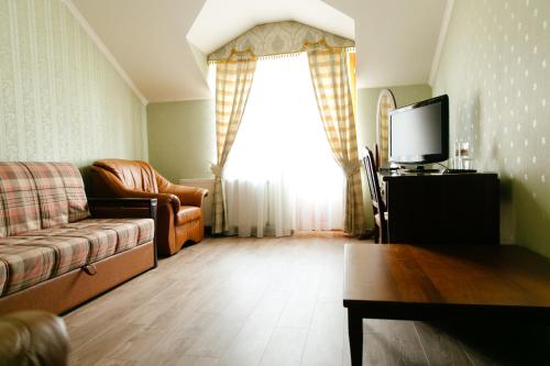 The Zolota Gora hotel-rancho welcomes guests with classic-style rooms, all featuring a flat-screen TV and air conditioning. Some include a balcony with scenic woodland views.