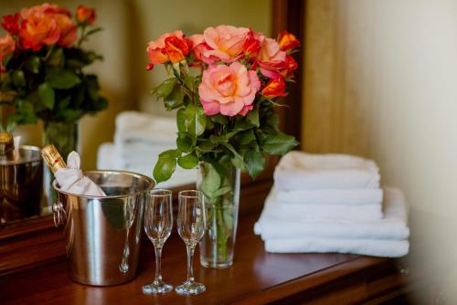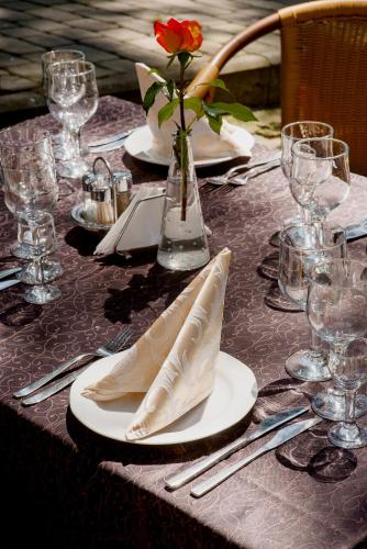 Breakfast is served in the restaurant, which features an elegant wooden interior. Drinks can be enjoyed at the hotel bar. Room service is available.