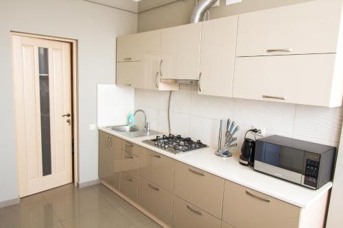 Апартаменты на ул. Помирецкая 9 features 1 bedroom, a fully equipped kitchen with a microwave and a fridge, a washing machine and 1 bathroom with a hair dryer. Towels and bed linen are provided in the apartment. The accommodation is soundproof.