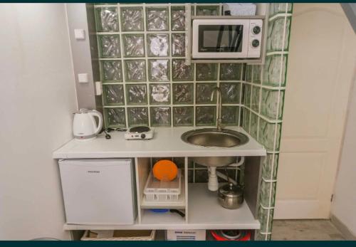 这家空调公寓配有1间独立卧室、带冰箱和微波炉的设施齐全的厨房以及1间浴室。这家公寓也提供1间浴室。