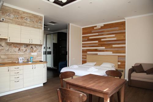 这家酒店距离Vokzalna Metro Station地铁站和Kiev Train Station火车站有3分钟的步行路程,设有免费无线网络连接和24小时前台,为客人提供带平面电视的客房和公寓。
