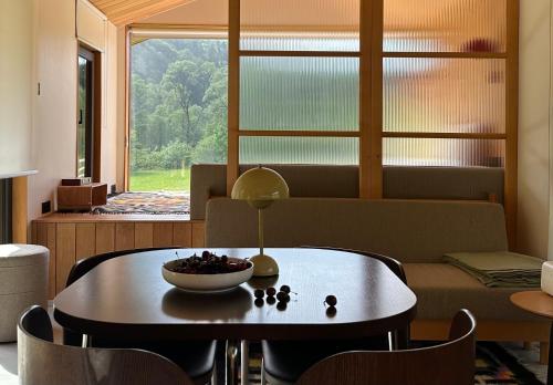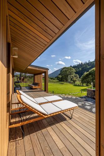 这家度假屋享有山景,提供露台,配有1间卧室、起居室、卫星频道平板电视、设施齐全的厨房以及1间带淋浴设施和热水浴池的浴室。这家度假屋还配备休息区、洗衣机以及1间带免费洗浴用品的浴室。