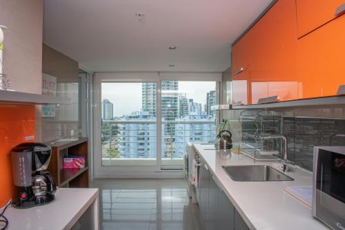 厨房配有洗碗机、烤箱和微波炉。公寓提供私人浴室和平板卫星电视。Alexander 1102 Punta del este公寓的其他设施包括热水浴池。