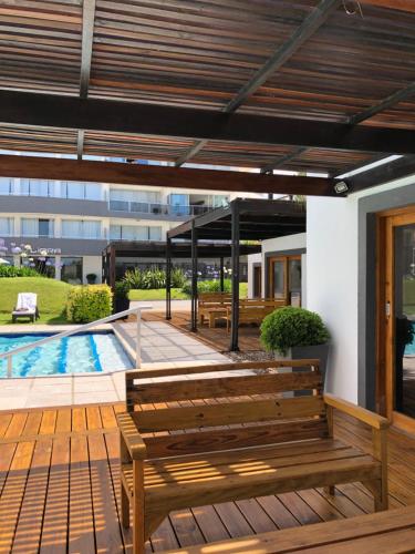 Frente al Mar Pinares 37 Mansa位于埃斯特角城,配备带免费WiFi的海景客房,配有健身中心、花园和露台。这家公寓提供免费私人停车位和客房服务。