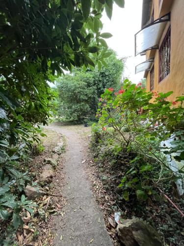 Habitación con baño privado y cama doble享有花园景,提供花园、共用休息室和露台,距离赫莫萨(Hermosa)约有16分钟步行路程。这家家庭式住宿配备带阳台的空调客房。