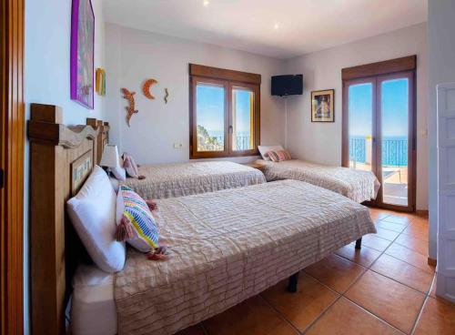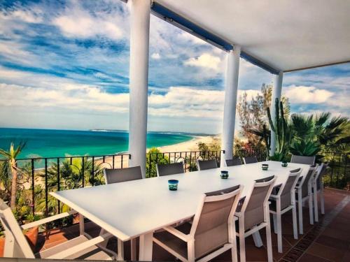 这家别墅提供5间卧室、5间浴室、床上用品、毛巾、平板电视、用餐区、设施齐全的厨房以及海景露台。这家空调别墅还提供洗衣机以及5间带淋浴设施和热水浴池的浴室。