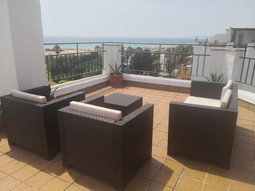 Ático Duplex con vistas al mar坐落于萨阿拉德洛斯阿图内斯,距离亚特兰特拉海滩(Atlanterra Beach)有5分钟步行路程,距离扎哈拉的阿朵尼斯海滩(Zahara de los Atunes Beach)有500米,提供空调。内部提供私人停车位。