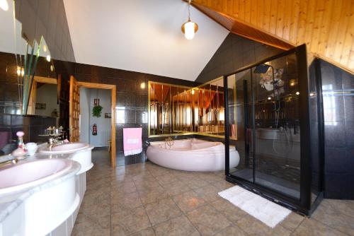 这家度假屋拥有露台、6间卧室、2间浴室、设施齐全的厨房、平板电视和热水浴池。这家度假屋也拥有2间浴室。