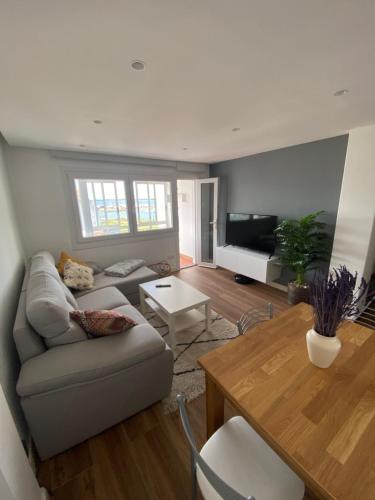 Apartamento Arousa Mar位于阿罗萨新镇,提供带免费WiFi的海景客房,配备私家海滩和露台。这家海滨住宿的客人可以使用阳台。