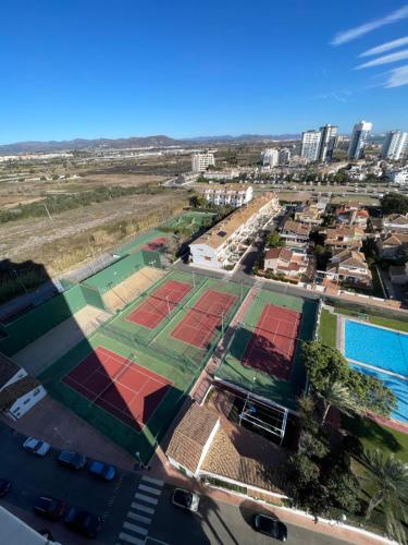 Bungalow on the beach 15 minutes from Valencia坐落于瓦伦西亚,靠近埃尔普伊格海滩(Platja El Puig),配备自助式住宿、自行车免费租用、私人海滩、季节性室外泳池和酒吧。这家海滨住宿的客人可以使用阳台、网球场、免费私人停车位和免费WiFi。