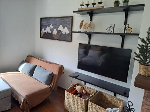 这家公寓配有2间卧室、起居室、带冰箱和电热水壶的设施齐全的厨房以及1间带坐浴盆和淋浴设施的浴室。1间浴室配有浴缸,也提供吹风机,提供毛巾和床上用品。