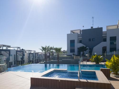 Oasis Beach 8 Top floor apartment in Torrevieja Punta Prima位于托雷维耶哈,配备带免费WiFi的海景客房,配有户外游泳池、花园和露台。内部提供私人停车位。