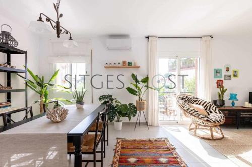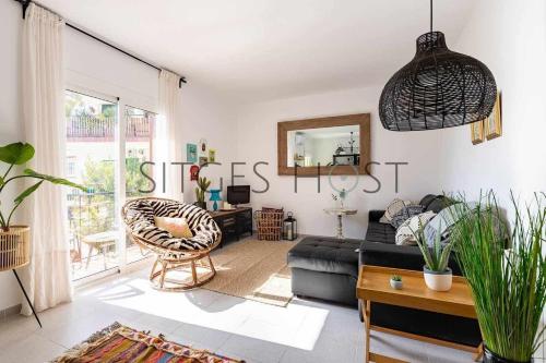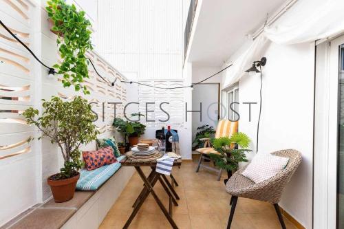 Con patio y a 5 minutos de la playa位于锡切斯,提供免费WiFi、空调和露台,距离巴萨罗多纳海滩(Bassa Rodona Beach)有6分钟步行路程,距离里贝拉海滩(Ribera Beach)有600米。这家公寓配备带阳台的客房。