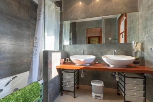 这家别墅享有池景,提供露台,配有4间卧室、起居室、卫星频道电视、设施齐全的厨房以及3间带淋浴设施和浴缸的浴室。3间浴室提供吹风机。