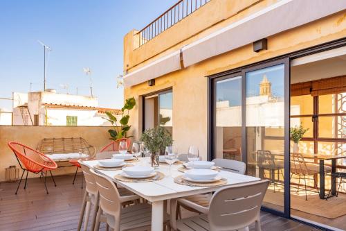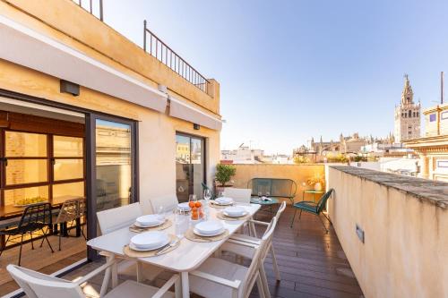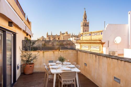 Duplex con Terraza Privada y vistas a la Catedral位于塞维利亚中心,配有空调住宿,距离圣十字区有5分钟步行路程,距离西班牙广场有1.6公里,距离玛丽亚·路易莎公园有19分钟步行路程。住宿配备免费WiFi。