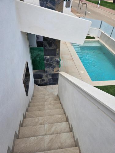 Villa KyDo - Enjoy luxury - San Pedro del Pinatar坐落于穆尔西亚自治区的圣佩德罗-德尔皮纳塔尔,拥有阳台。这家住宿提供私人泳池、免费WiFi和免费私人停车位。