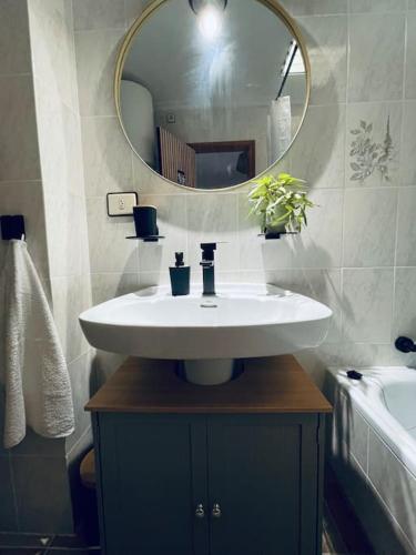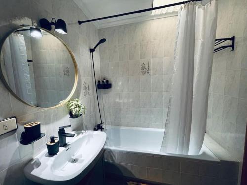 这家空调公寓配有1间卧室、起居室、带冰箱和咖啡机的设施齐全的厨房以及1间带淋浴设施和吹风机的浴室。这家公寓还配备平板电视、休息区、洗衣机以及1间带浴缸的浴室。