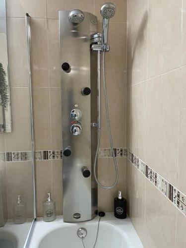 这家空调度假屋配有2间卧室、起居室、带冰箱和咖啡机的设施齐全的厨房以及1间带热水浴池和免费洗浴用品的浴室。1间浴室配有浴缸,也配有吹风机,提供毛巾和床上用品。