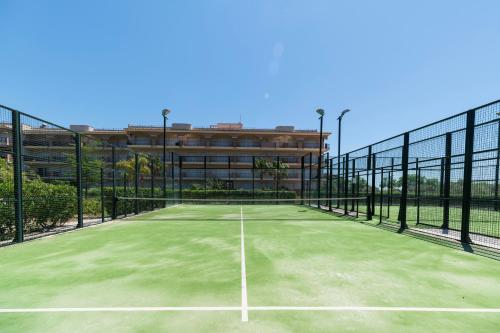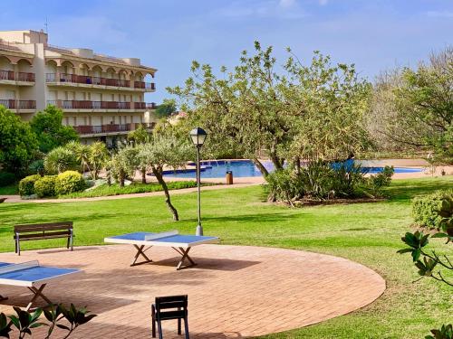 Golden Beach Apartamentos公寓位于桑特卡尔莱斯德拉拉皮塔(Sant Carles de la Ràpita),坐落在1座现代公寓大楼内,提供室外游泳池和免费使用的板网球场,距离海滩500米。