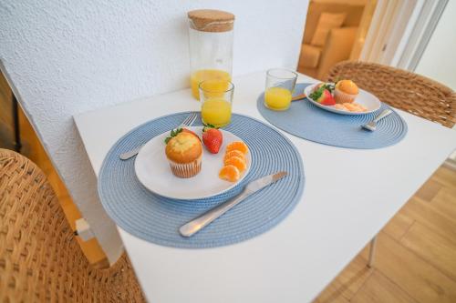 这家空调公寓配有2间卧室、起居室、带冰箱和咖啡机的设施齐全的厨房以及1间带淋浴设施和吹风机的浴室。这家公寓也拥有休息区和1间浴室。