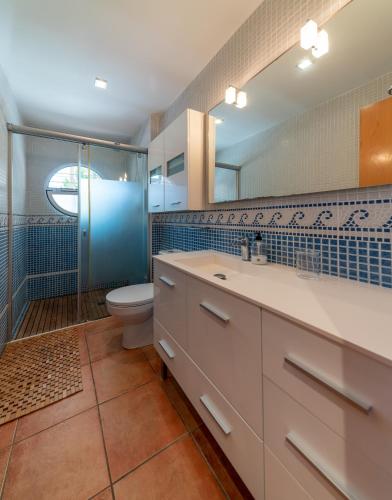 这家空调公寓配有3间卧室、起居室、带冰箱和咖啡机的设施齐全的厨房以及3间带坐浴盆和淋浴设施的浴室。3间浴室配有浴缸,也配有吹风机,提供毛巾和床上用品。