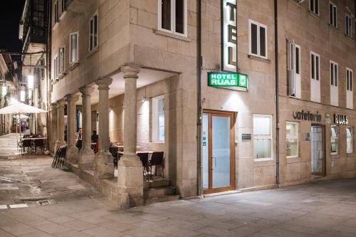 Hotel Restaurante Rúas酒店位于蓬特韦德拉(Pontevedra)的历史中心,靠近Plaza de la Leña广场,提供配备了免费无线网络连接和等离子电视的简单的客房。