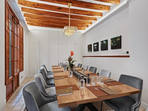 Hotel Gloria de Sant Jaume酒店坐落在一座经过修复的19世纪建筑内,拥有传统元素,如外露式木梁、液压瓷砖和大理石浴室。