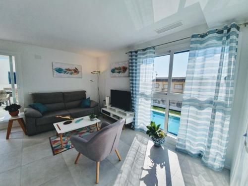Modern apartamento with large south terrace, Playa Flamenca享有海景,提供庭院和电热水壶,距离卡拉莫斯卡海滩(Playa Cala La Mosca)约有1.9公里。这家公寓配有私人泳池。客人可以在周边地区体验浮潜和骑行等活动。