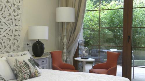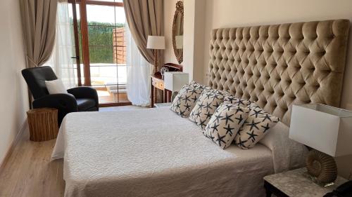 Hotel Rural Playa de Aguilar酒店每间美丽的客房均通向露台,配有平面电视、各种枕头、迷你吧、保险箱以及带水力按摩浴缸的浴室。