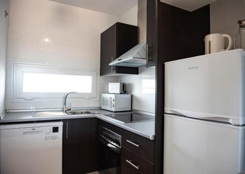 这家空调公寓配有2间卧室、起居室、带冰箱和咖啡机的设施齐全的厨房以及1间带浴缸和吹风机的浴室。这家公寓也配备休息区和1间浴室。