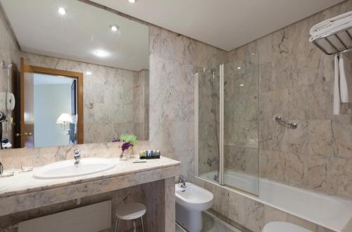 URH Ciutat de Mataró酒店的所有客房均铺有镶木地板,设有浅色木制家具、卫星电视和私人浴室。酒店还提供免费WiFi。