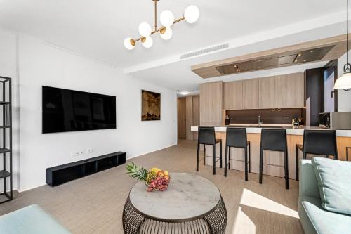 这家空调公寓配有2间卧室、起居室、带冰箱和咖啡机的设施齐全的厨房以及2间带坐浴盆和淋浴设施的浴室。这家公寓还配备休息区、洗衣机以及2间带吹风机的浴室。