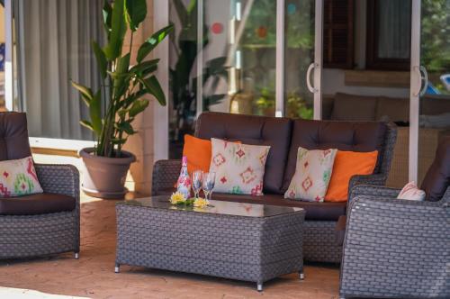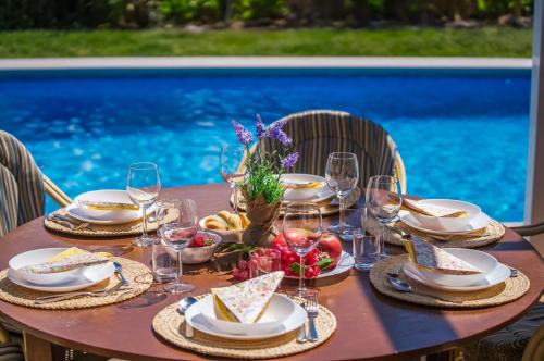这家乡村民宿提供3间卧室、4间浴室、床上用品、毛巾、带卫星频道的电视、设施齐全的厨房以及池景露台。这家空调乡村民宿还配备洗衣机以及4间带淋浴设施的浴室。