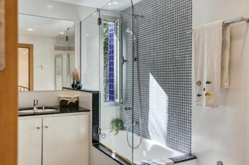 这家别墅配有5间卧室、3间浴室、床上用品、毛巾、平板电视、设施齐全的厨房以及花园景露台。这家别墅还提供洗衣机以及3间带热水浴池的浴室。