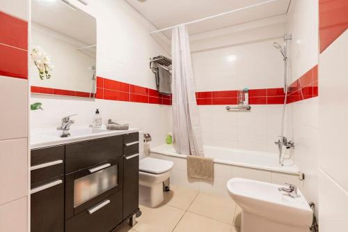 这家空调1卧室公寓提供1间浴室,配有坐浴盆、浴缸和吹风机。这家公寓提供阳台,也拥有平板电视、1间浴室以及带冰箱、洗碗机和烤箱的设施齐全的厨房。