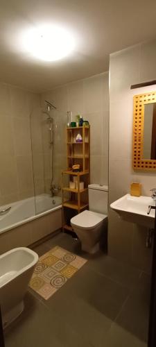 这家空调公寓配有3间独立卧室、起居室、设施齐全的厨房以及2间浴室。这家公寓也配有2间浴室。