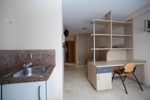 The rooms are equipped with an electrical hotplate or microwave, kitchenware, fridge and a complete bathroom with shower, as well as a working desk.