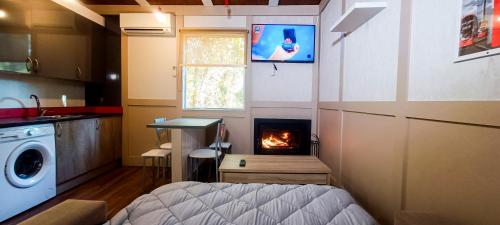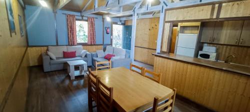 这家小木屋配有烧烤设施和花园,天气晴好时可供客人使用。