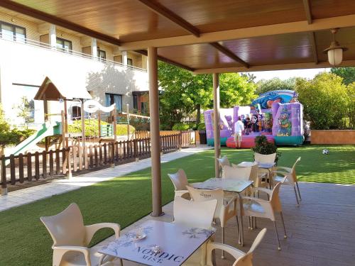 您可在古色古香的花园放松休息,而孩子则可在操场上的玩乐。部分客房可通往附近的一个私人游泳池。