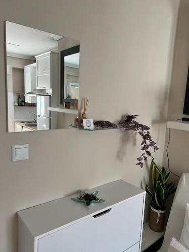 这家空调公寓配有1间卧室、起居室、带冰箱和咖啡机的设施齐全的厨房以及1间带淋浴设施的浴室。这家公寓也提供休息区和1间浴室。