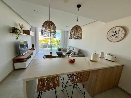 这家空调公寓配有2间卧室、起居室、带冰箱和咖啡机的设施齐全的厨房以及2间带坐浴盆和淋浴设施的浴室。这家公寓还配备休息区、洗衣机以及2间带吹风机的浴室。
