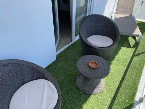这家公寓提供1间卧室、1间浴室、床上用品、毛巾、带有线频道的平板电视、用餐区、设施齐全的厨房以及海景露台。这家空调公寓还配备休息区、洗衣机以及1间带淋浴设施的浴室。