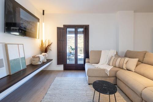 这家别墅提供露台,享有山景,拥有3间卧室、起居室、平板电视、带冰箱和烤箱的设施齐全的厨房以及4间带浴缸的浴室。这家别墅也配有休息区和4间浴室。