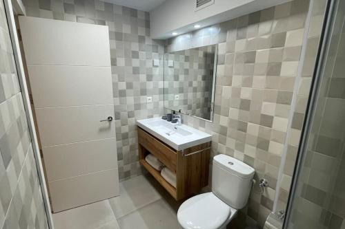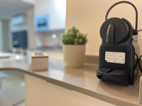 这家空调公寓配有1间卧室、起居室、带冰箱和咖啡机的设施齐全的厨房以及1间带淋浴设施和吹风机的浴室。这家公寓也配备休息区和1间浴室。