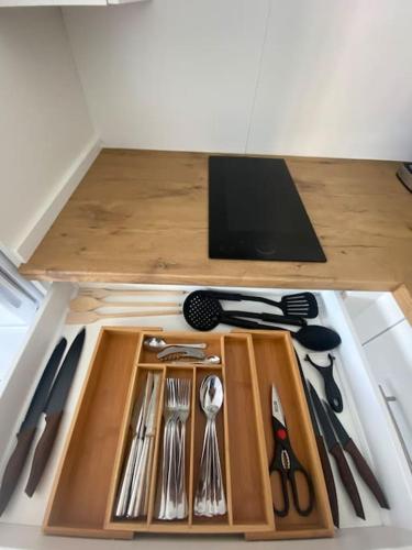 这家公寓提供露台,享有海景,配有1间卧室、起居室、平板电视、带冰箱和烤箱的设施齐全的厨房以及1间带淋浴设施的浴室。这家公寓还提供休息区、洗衣机以及1间带免费洗浴用品的浴室。