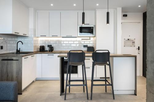 这家空调公寓配有2间卧室、起居室、带冰箱和咖啡机的设施齐全的厨房以及1间带淋浴设施和免费洗浴用品的浴室。这家公寓还配备休息区、洗衣机以及1间带吹风机的浴室。