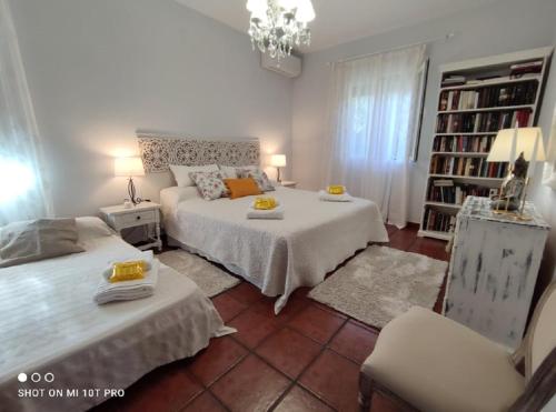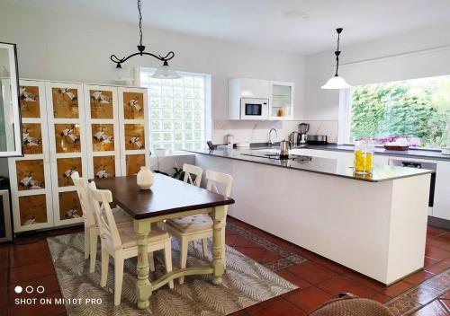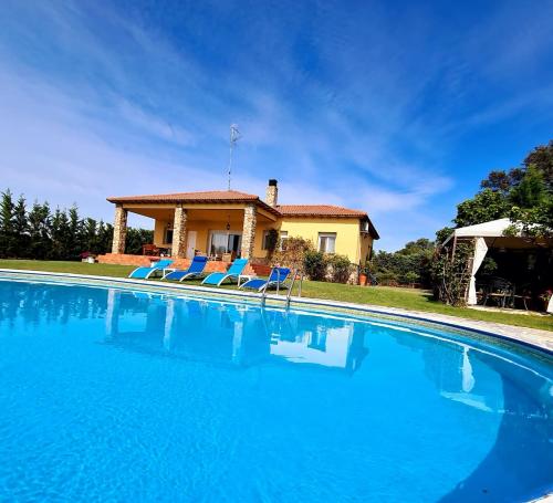 这家别墅配有2间卧室、1间浴室、床上用品、毛巾、带卫星频道的平板电视、用餐区、设施齐全的厨房以及池景露台。这家空调别墅还提供休息区、洗衣机以及1间带坐浴盆和淋浴设施的浴室。